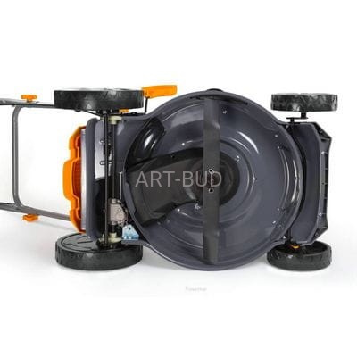 Noże tnące kosiarki spalinowej są wykonane z hartowanej stali, co zapewnia długą żywotność ostrza. Szerokość koszenia kosiarki to aż 510mm co pozwala na komfortową pracę na dużych powierzchniach. Mocowanie ostrza wraz z wytrzymałą śrubą daje wyjątkową wytrzymałość zespołu tnącego.