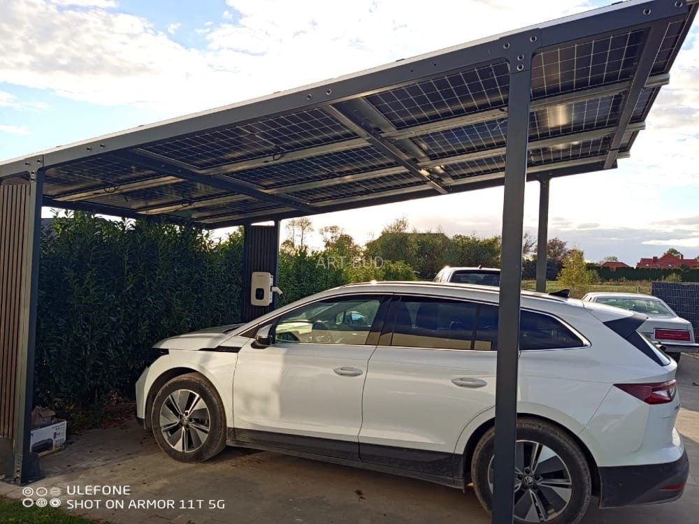 - Typ: carport fotowoltaiczny, jednostanowiskowy