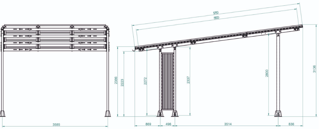 - Istnieje możliwość konfiguracji Carportu H1 pod dowolną liczbę i wielkość modułów pv.
