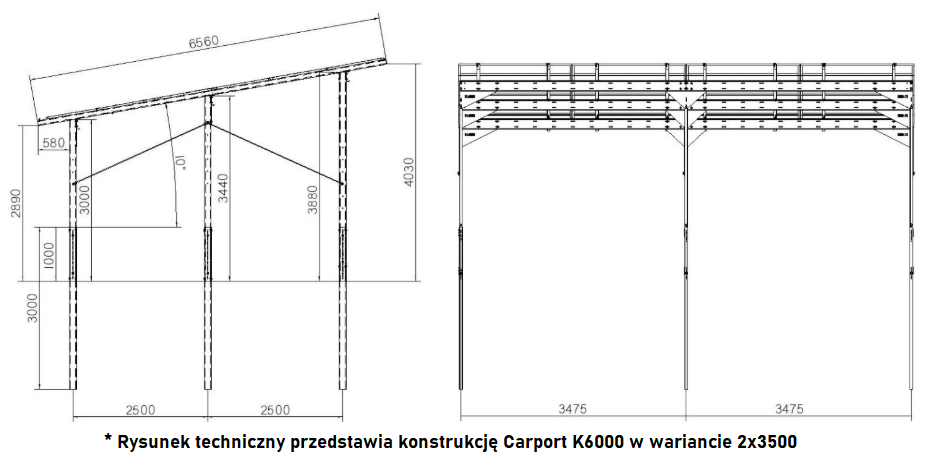 Carport K6000 (szer. 3500 mm) konstrukcja pod panele PV