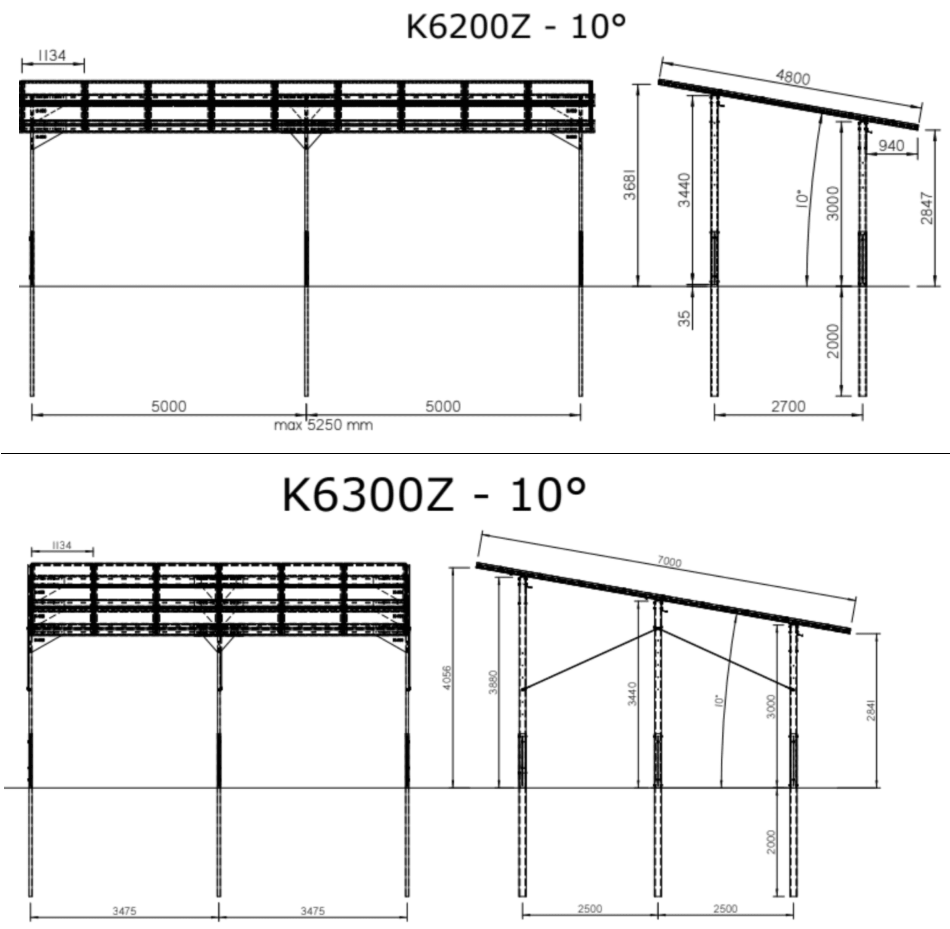 - Istnieje możliwość konfiguracji Carportu K6200Z/K6300Z pod dowolną liczbę i wielkość modułów pv.