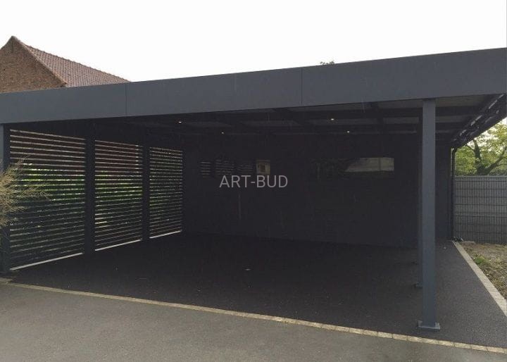 - Konstrukcja: wolnostojąca, zadaszona wiata samochodowa