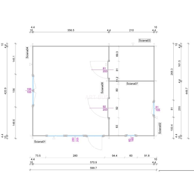 Tak — gruby bal 44 mm, solidna konstrukcja i możliwość doposażenia (docieplenie, pokrycie dachu) sprawiają, że domek może być użytkowany przez cały rok. - Jakie są wymiary i ile ma powierzchni?