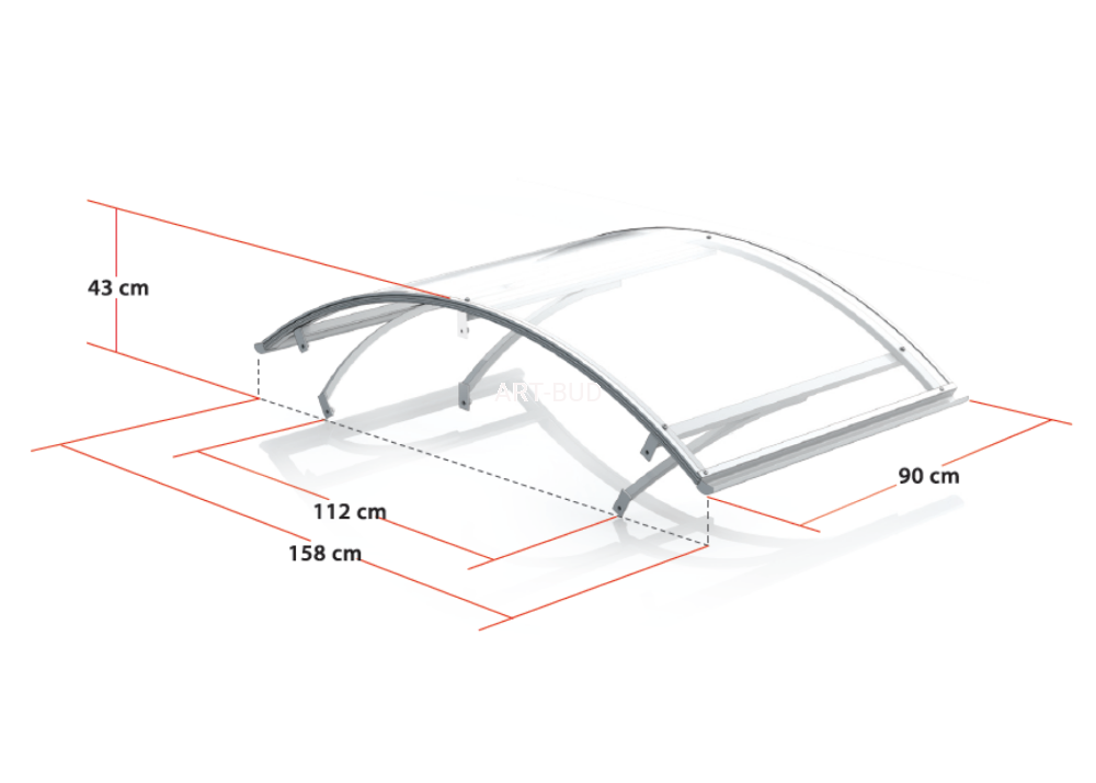 Daszek Leo akrylowy na wspornikach nad drzwi wejściowe 158x90x28 cm