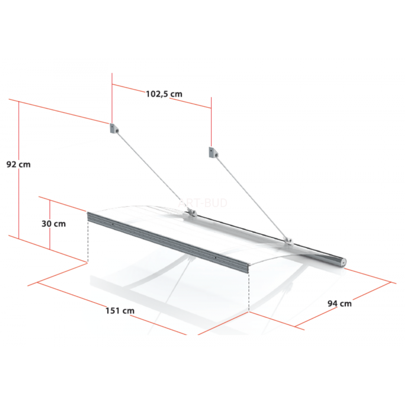 Daszek nad drzwi z akrylu Rubin 151x94x30 cm