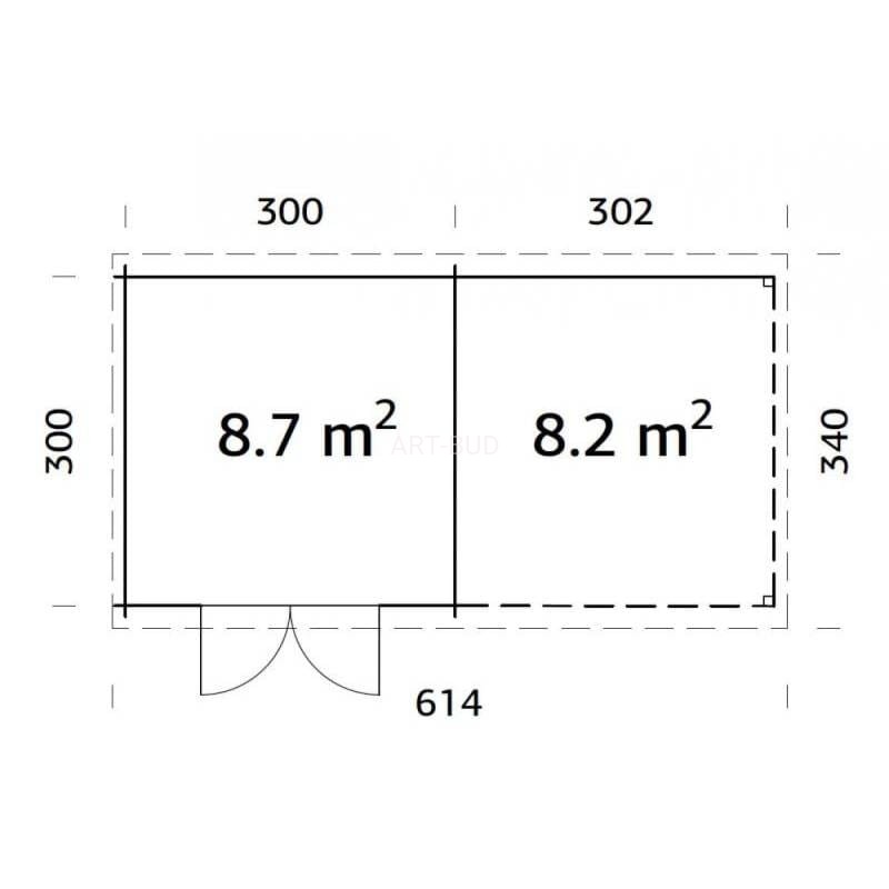 Wiata i domek ogrodowy Robert E 614×320 20 m² + 10 m² wiata