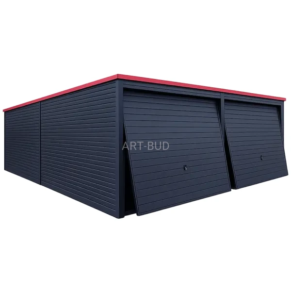 Garaż 6x6 z dwoma bramami dachem jednospadowym do tyłu