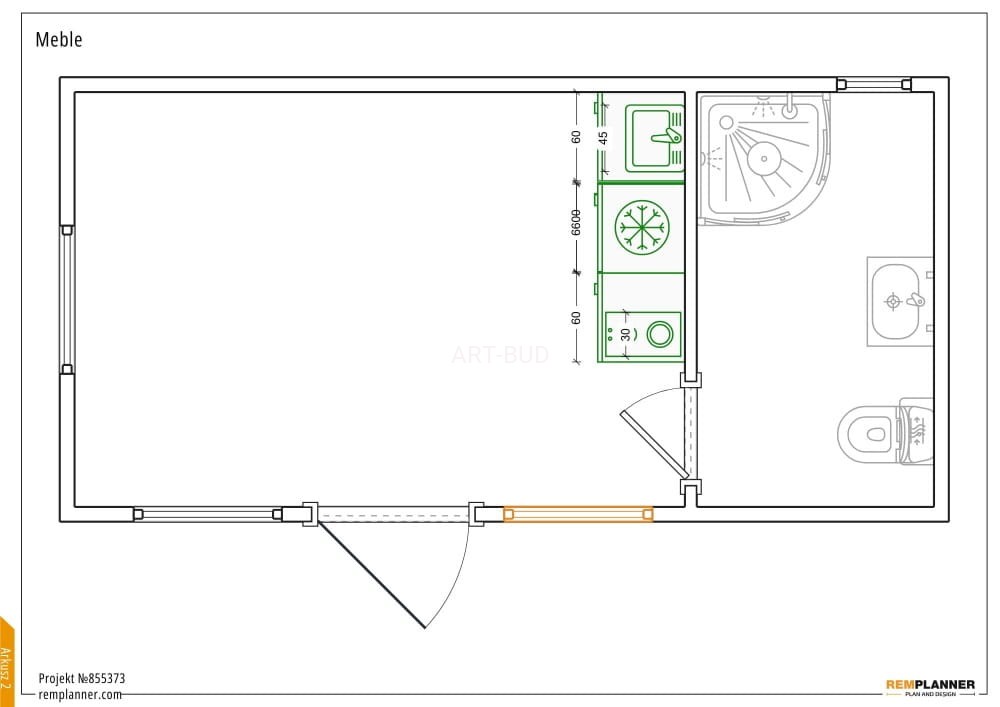 Kontener mieszkalny 6x3 z aneksem kuchennym i łazienką