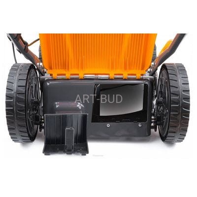 Nóż tnący kosiarki jest wykonany z hartowanej stali, co zapewnia długą żywotność ostrza. Szerokość koszenia kosiarki to aż 460 mm co pozwala na komfortową pracę na dużych powierzchniach. Mocowanie ostrza wraz z wytrzymałą śrubą daje wyjątkową wytrzymałość zespołu tnącego.