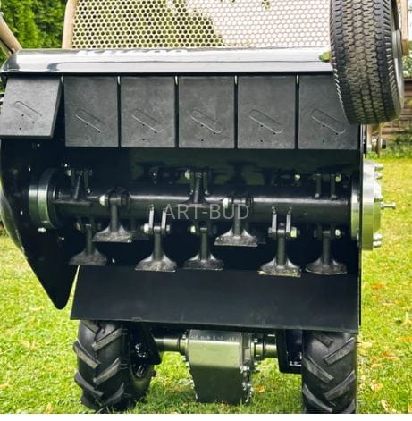 -Bijaki młotkowe „T”: 32 bijaki młotkowe zapewniają skuteczne rozdrabnianie i mulczowanie trawy, chwastów i lekkich zarośli — idealne, gdy teren jest zróżnicowany lub zarośnięty.