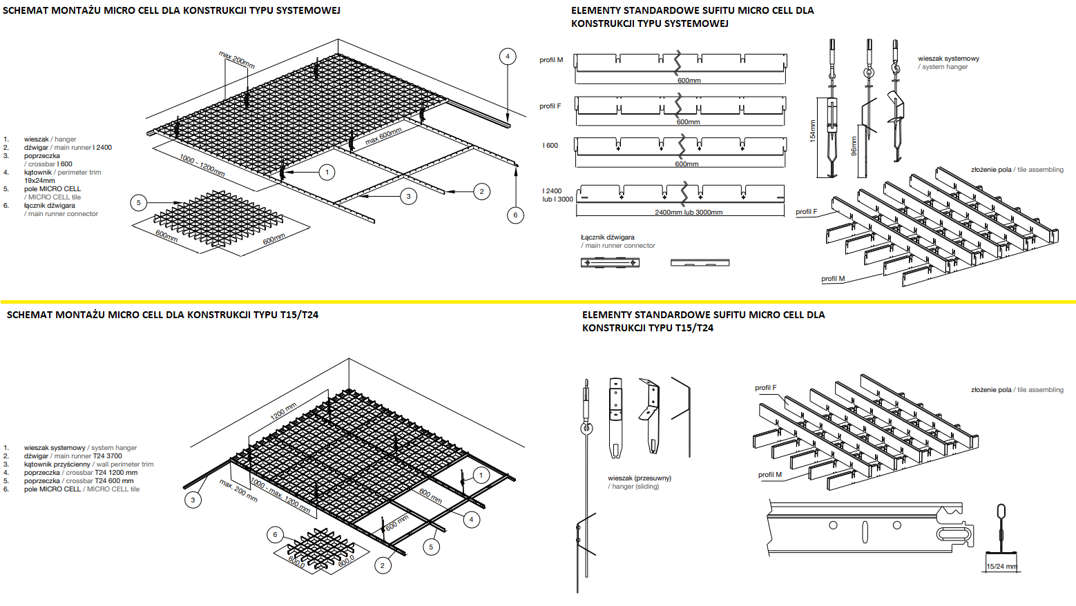 *Poprzeczka M i F (przedstawiono na rysunku „Elementy standardowe sufitu dla konstrukcji systemowej”).