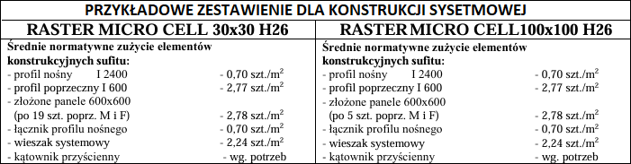 - Rodzaj sufitu: otwarty (Micro Cell)