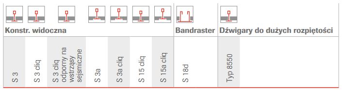 - Dostępne systemy montażowe: różne, w tym systemy widoczne, pół- zakryte i samonośne (do wyboru wg projektu)