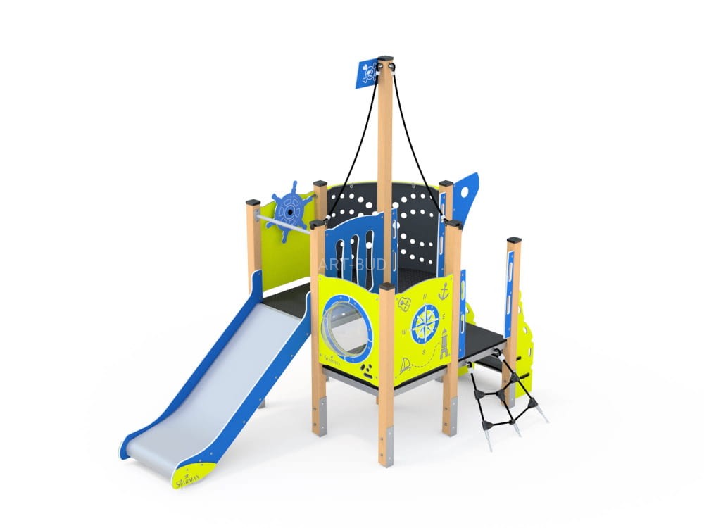 Morski plac zabaw w stylu statku to wyjątkowe urządzenie do zabawy na świeżym powietrzu, które zamienia codzienną aktywność w rejs pełen wyzwań. Motywy żeglarskie, panele tematyczne oraz morskie aplikacje pobudzają wyobraźnię i zachęcają dzieci do ruchu. Zestaw doskonale sprawdzi się jako tematyczny plac zabaw dla dzieci w parkach, na osiedlach, w przedszkolach i szkołach.