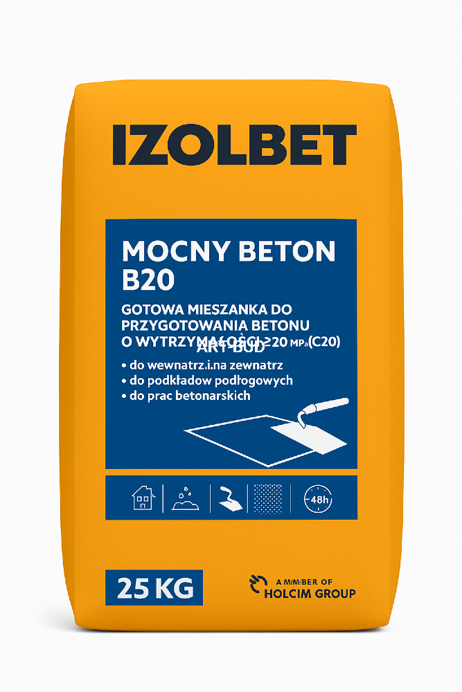 Beton B20 marki IZOLBET , klasa PF02, to uniwersalna, drobnoziarnista mieszanka sucha, przeznaczona do przygotowania zaprawy betonowej. Doskonale sprawdza się zarówno w robotach betoniarskich, jak i przy pracach remontowych i naprawczych. Można ją stosować zarówno wewnątrz budynków, jak i na zewnątrz – bez obaw o trwałość wykonanych elementów.