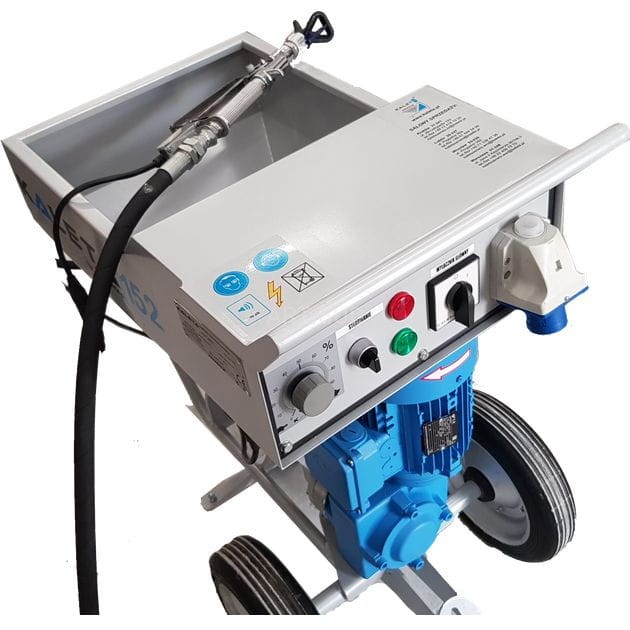Kompaktowy, niezwykle cichy agregat KALETA-152 z zasilaniem jednofazowym 230V, mały i uniwersalny agregat z zasilaniem jednofazowym 230V. Przeznaczony jest do prac z masami szpachlowymi, gładziami gipsowymi itp. Obsługuje wszystkie rodzaje gotowych do użycia materiałów: powłoka wygładzająca, powłoka uzupełniająca, powłoka osłonowa, powłoka bitumiczna