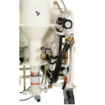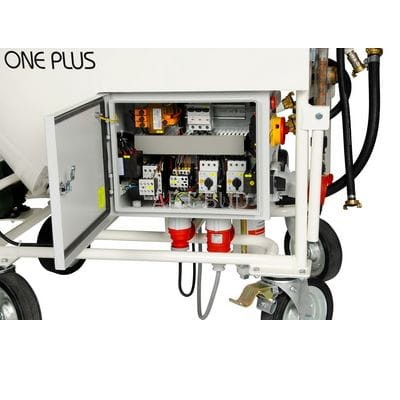| DANE TECHNICZNE: Wydajność : regulowana od 8 do 80 l / min Odległość podawania : do 50 m Zasilanie prądem: 400 Volt Napęd : 2 trójfazowe silniki 400V/ 50 Hz Motoreduktor główny: 5,5 kW 416 obr./min, Motoreduktor koła podawczego: 0,55 kW 29 obr./min Wydajność kompresora : 0,9kW wydajność 250 l/min Pompa wody : 0,37kW Wymiary: D/S/W:1250/720/1530 mm Wysokość zasypu: 90cm Pojemność zasobnika: 130 l Waga: 270 kg |