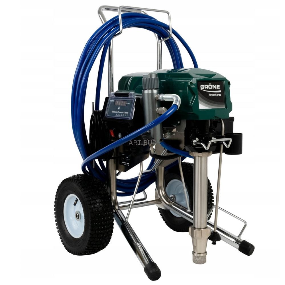 Wysokiej jakości agregat malarski firmy Grone PowerSpray 51 na wózku do malowania większych powierzchni. Produkt cechuje trwałość, ekonomia i funkcjonalność.