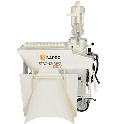 BAPRO one STRONG MAX to flagowy produkt BAPRO, prawdziwie innowacyjny, posiadający opatentowane i zastrzeżone rozwiązanie techniczne polegające na zmiennym systemie pracy pomiędzy mieszarko-pompą a pompą. Szereg prac budowlanych dotychczas było i jest wykonywane w sposób ręczny bądź przy użyciu kilku maszyn. Z myślą o minimalizacji kosztów i wzroście wydajności pracy opracowana została maszyna BAPRO one 230V STRONG MAX, wyznaczająca nowe standardy dla maszyn tynkarskich. Maszyna w odróżnieniu od typowego agregatu tynkarskiego pozwala poszerzyć zakresu usług nie koncentrując się tylko i wyłącznie na fabrycznie suchych mieszankach typu tynki gipsowe czy cementowo-wapienne ale również dodatkowo tych płynnych np. (tynk elewacyjny, płynne jastrychy, gładzie szpachlowe czy kleje). Dodatkowo maszynę możemy wykorzystać do natryskiwania tradycyjnej zaprawy cementowo - wapiennej wymieszanej najpierw w betoniarce. Agregat wyróżnia się też jakością zastosowanych podzespołów. Nasz agregat tynkarski zawiera specjalnie skonstruowane wzmocnione motoreduktory zapewniając ciągłość mieszania, wysokowydajny bezobsługowy (bezolejowy) kompresor dostarczający odpowiednią ilość powietrza do natrysku zapraw, armaturę wodno - powietrzną opartą na module ze stali nierdzewnej by wykluczyć korozję, a najlepsza automatyka przemysłowa jest gwarancją bezawaryjnego sterowania maszyną. Bezpieczne a zarazem poręczne oprzyrządowanie zadba o wygodę prowadzenia pracy. Obsługa maszyny jest bardzo prosta! Szybko następuje proces automatycznego mieszania a następnie natryskiwania. Opracowana konstrukcja wieloelementowa maszyny pozwala sprawnie ją przemieszczać pion - poziom a łatwość manewrowania zapewnia system czterech kół jezdnych obracalnych wokół osi.