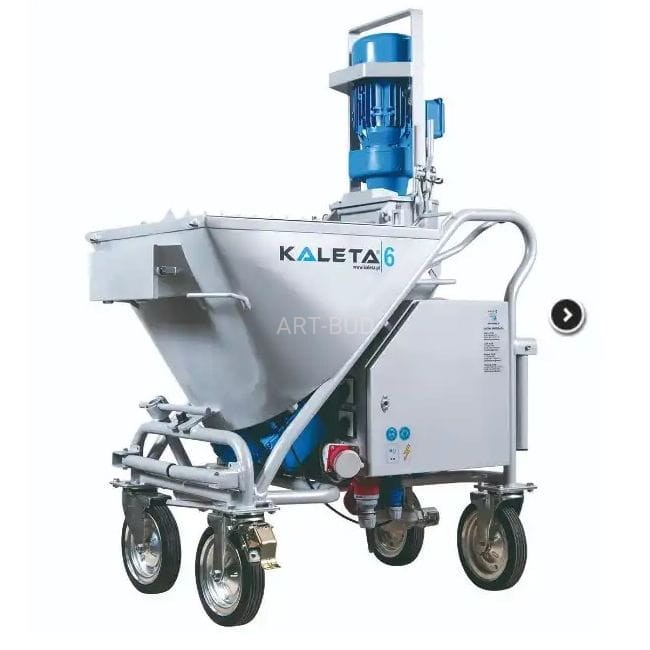Najnowszy model w palecie agregatów tynkarskich KALETA, przeznaczony jest do tynków maszynowych (wapienno-cementowe, wapienno-gipsowe, specjalne oraz wylewki samopoziomujące). Agregat współpracuje z silosem a jego wydajność i odległość podawania, zależna jest od mieszanki tynkarskiej i typu pompy: D lub R..