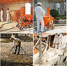 | PFT PFT G 4 jest pracującym w trybie ciągłym agregatem tynkarskim, przeznaczonym do urabiania wytwarzanych fabrycznie suchych zapraw mieszanych maszynowo. Urządzenie może być napełniane zarówno materiałem z worków jak i bezpośrednio z silosu lub kontenera za pomocą pokrywy przelotowej lub pokrywy nadmuchu oraz SILOMAT-u PFT. Zasada funkcjonowania Strefa sucha przeznaczona do wypełnienia gotową zaprawą oddzielona jest od strefy mieszania i strefy pompy. Sucha zaprawa podawana jest do komory mieszania za pośrednictwem zamocowanego ukośnie koła dozującego. Uruchomienie oraz dopełnienie PFT G4 nową porcją materiału może nastąpić w dowolnym momencie. Koło dozujące napędzane jest oddzielnie i może być szybko zdemontowane dzięki centralnie umieszczonemu mocowaniu. Napełnianie materiałem z worków Jedno urządzenie do wszystkich materiałów, wszystko przy pomocy jednego urządzenia. PFT G4 to zwarty, łatwy do transportowania agregat tynkarski, wykonany w dobrze przemyślanej technice, oferujący wysoką wydajność podawania na dużą odległość, z możliwością łącznego stosowania z wszystkimi innymi elementami programu maszynowego PFT. Dzięki niskiemu poziomowi zasypywania urządzenie doskonale nadaje się do napełniania materiałem z worków. Urządzenie nadaje się idealnie do stosowania na mniejszych i średnich budowach. Bezpośrednie napełnianie z silosu Agregat tynkarski PFT G4 zaprojektowany został w systemie modułowym, podobnie jak dziecinne klocki do budowania. Dzięki zastosowaniu pokrywy przelotowej PFT urządzenie to można szybko i łatwo podłączyć pod każdym silosem i/lub kontenerem, wykorzystując przy tym kołnierz. Urządzenie jest dobrze przystosowane do podawania materiałów na odległość do 30m. Napełnianie pneumatyczne z zastosowaniem SILOMAT-u PFT Łatwo, szybko i racjonalnie. Urządzenie tłoczące PFT SILOMAT montowane jest przy pomocy kołnierza do silosu lub kontenera. Cały montaż to zaledwie kilka ruchów rąk. Po naciśnięciu przycisku wytwarzana fabrycznie sucha zaprawa podawana jest całkowicie automatycznie i bezpyłowo do agregatu tynkarskiego. Urządzenie jest przy tym umieszczane bezpośrednio w miejscu urabiania materiału, niezależnie od odległości od silosu lub kontenera od miejsca jego stosowania. Pneumatyczne urządzenie tłoczące PFT SILOMAT oferowane jest w różnych wersjach wykonania. |
