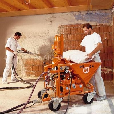 z pompą wodyNajwyższej klasy agregat tynkarski renomowanego niemieckiego producenta. Profesjonalne urządzenie które podejmie skutecznie każde wyzwanie i zawsze sprawdzi się nawet w najcięższych warunkach. Prosta i szybka oraz praktyczna - uniwersalna pompa mieszająca do wszelkich prac budowlanych.Nowy PFT G4 X Smart jest pracującym w trybie ciągłym urządzeniem do gotowych zapraw, przeznaczonych do podawania mechanicznego. Może być zaopatrywana w materiał zarówno z worków, jak i z zasobników za pośrednictwem nakrywy przelotowej PFT lub nadmuchowej PFT SILOMAT. Maszyna składa się z przenośnych, oddzielnych części a ich niewielkie wymiary i niski ciężar umożliwiają wygodny i łatwy transport. Agregaty oferowane przez naszą firmę wyposażone są w niezbędny osprzęt potrzebny do bezproblemowego uruchomienia i pracy tego urządzenia. Przy sprzedaży maszyn nie stosujemy żadnych chwytów w postaci " pakiet startowy wyposażenia: węże wodne, przewody zasilające itp. " , ponieważ to już jest w komplecie oraz cenie maszyny. U nas mają Państwo jasne zasady ceny i zakupu urządzenia bez dodatkowych bonów rabatowych, które w rzeczywistości zawyżają cenę maszyny. Wsparci wiedzą naszych pracowników sami dokonujecie wyboru opcji zakupu maszyny, osprzętu, części