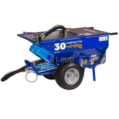 Wysokowydajny agregat dedykowany do optymalizacji wydajnosci przy pracach tynkarskich na ociepleniach. Ten slimakowy agregat z wbudowanym kompresorem, służy do nanoszenia tynków i zapraw. Jeden z najwydajniejszych agregatów EUROPRO. Dzięki zastosowaniu specjalnej przystawki CompactPro IDEAL urządzenie działa jak klasyczny agregat tynkarski umożliwiający mieszanie z wodą suchych tynków maszynowych lub zapraw klejowych. Dodatkowo urządzenie posiada pełną regulację obrotów pompy ślimakowej dzięki czemu można z powodzeniem aplikować wszelkiego rodzaju tynki strukturalne. Gdy kompresor jest wyłączony, ta maszyna staje się bardzo przydatną pompą do fug. Może mieszać i pompować zaprawę tiksotropową, standardowe zaprawy i zaprawy oraz jastrychy o swobodnym przepływie. Compact Pro 30 jest obsługiwany z łatwością przez jedną osobę. Szerokie opony i wąskie nadwozie pozwalają na łatwe poruszanie się po obiekcie, zawsze mieści się w standardowych drzwiach.