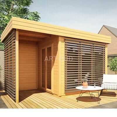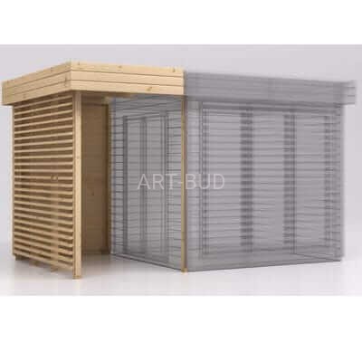 Drewniana altana ogrodowa wysokiej jakości, niezbędny dodatek do każdego ogrodu. Altana ogrodowa Lawenda będzie idealnym miejscem do celów rekreacyjnych. Pokryta jest płaskim dachem, wykonanym podobnie jak cała altana z drewna świerkowego. Dach pokryty jest papą asfaltową. Obiekt wyróżnia się frontowym przeszkleniem – posiada 3 okna z brązowymi szybami typu antisol. Ponadto altana ogrodowa wyposażona jest w przeszklone dwuskrzydłowe drzwi.