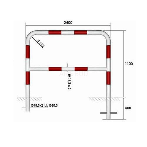 Barierki drogowe utrzymujące bezpieczeństwo w ruchu drogowym. Bariery chodnikowe, blokujące są częścią infrastruktury miejskiej. Stosowane do zabezpieczenia chodników, ścieżek rowerowych, wejść do szkół i urzędów, różnic poziomu w terenie, jako zabezpieczenie przed upadkiem z nasypów lub nagłym wtargnięciem na ulicę . Dodatkowo informują i ostrzegają kierowców o zachowaniu szczególnej ostrożności. Wykonane z rury Ø 60,3mm o szerokość 240 cm.