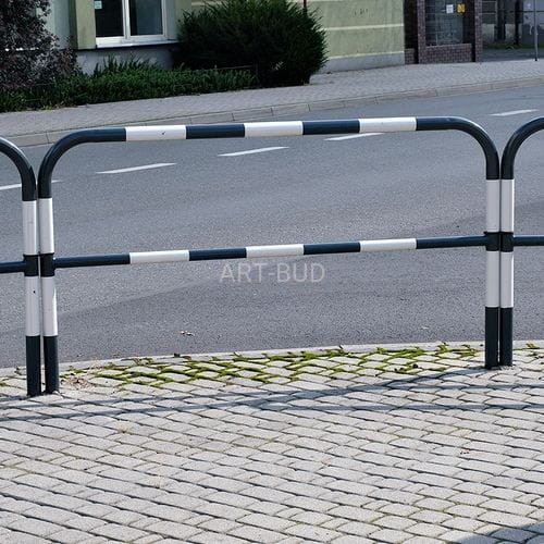 Barierka drogowa U11 na ramie giętej z rury stalowej z dolna poprzeczką spawaną.