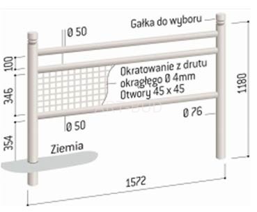 Wersja z okratowaniem kwadratowymi ogniwami, wykonane z drutu o średnicy 4 mm.