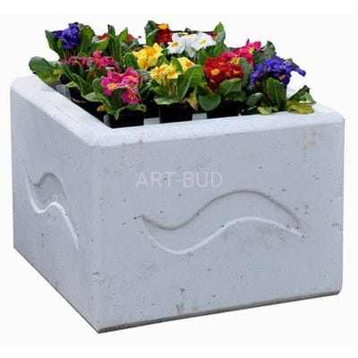 Nowoczesna donica betonowa wykonana jest z betonu architektonicznego o fakturze przypominającej naturalny, matowy marmur. Donica posiada wytłoczenia w kształcie fali z każdej strony. Donica posiada otwór odpływowy na dnie. Gładka powierzchnia betonu architektonicznego doskonale komponuje się z betonowa zabudową przestrzeni zurbanizowanych, a zwłaszcza utwardzonych placów i ciągów pieszych. Duża waga donicy powoduje, że trudno ją przesunąć i nie ma potrzeby przykręcania do podłoża.BETON ARCHITEKTONICZNY