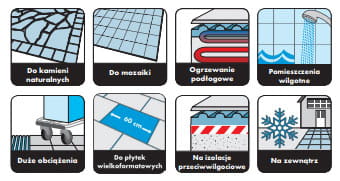 - na podłoża odkształcalne: na ogrzewanie podłogowe, balkony, tarasy
