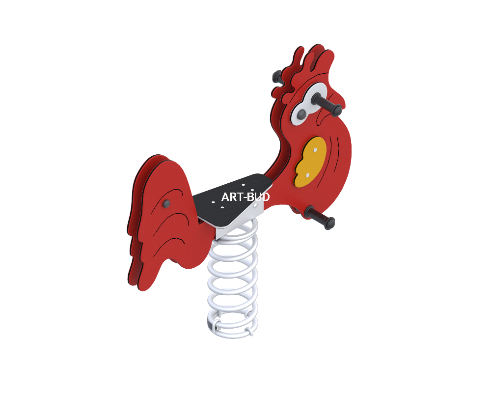 Bujak na sprężynie Kogut wykonany jest z płyty HDPE o grubości 15mm. Bujak mocowany jest do sprężyny o wym. 360x180. Przeznaczony dla dzieci od 4 do 8 lat.