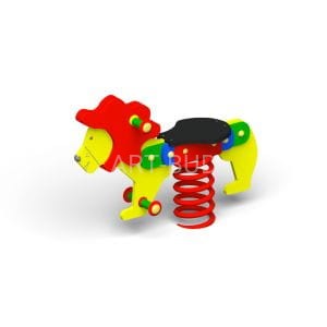 Bujak sprężynowy w formie lwa na place zabaw. Jedno z najbardziej popularnych urządzeń zabawowych dla dzieci, od lat cieszace się niezmienną popularnością.