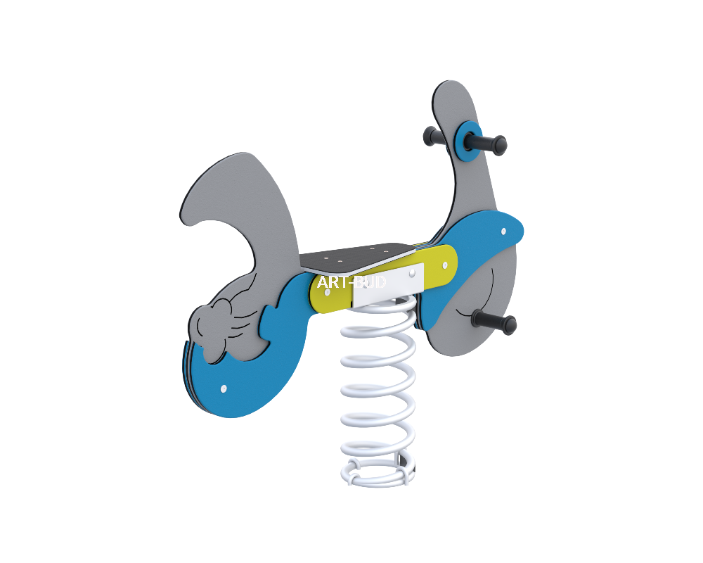 Bujak na sprężynie Skuter wykonany jest z płyty HDPE o grubości 15mm. Bujak mocowany jest do sprężyny o wym. 360x180. Przeznaczony dla dzieci od 4 do 8 lat.