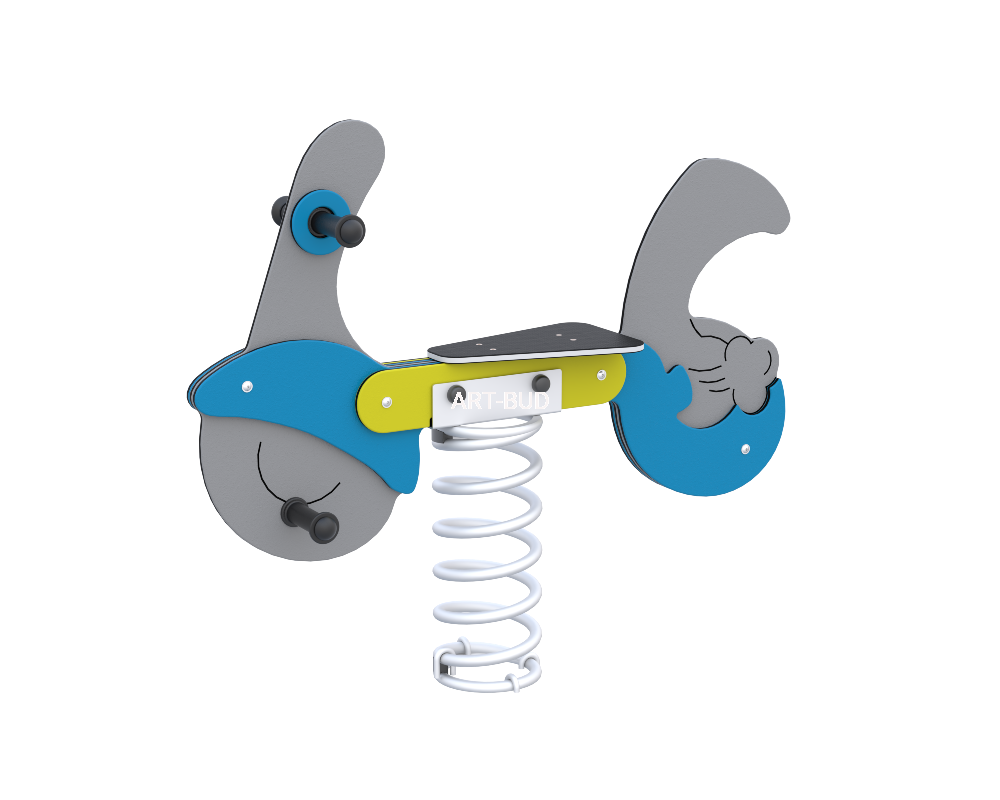 Bujak na sprężynie Słoń wykonany jest z płyty HDPE o grubości 15mm. Bujak mocowany jest do sprężyny o wym. 360x180. Przeznaczony dla dzieci od 4 do 8 lat.