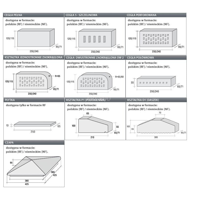 Przedstawiona cena podstawowa dotyczy 1 szt cegły perforowanej o wymiarach 250x120x65 mm. Cegła pełna w opcjach wyboru-wybierz. Oferta dotyczy sprzedaży paletowej. Cena pozostałych cegieł na zapytanie.