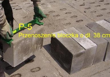 Chwytak P-5 do przenoszenia bloczków betonowych o dł. 38 cm