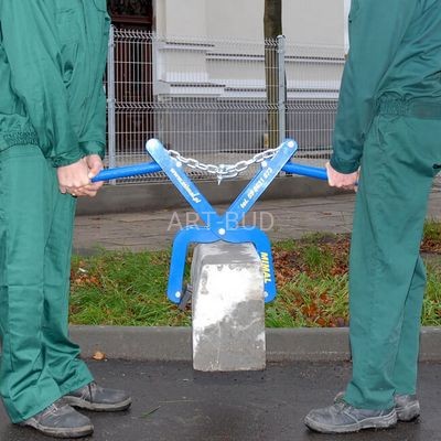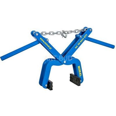 Chwytak uniwersalny z oferty firmy Mimal. Służy do ręcznego i mechanicznego przemieszczania i ustawiania krawężników i innych elementów betonowych o wadze do 150 kg. Posiada duże szczęki z wkładkami gumowymi, które zapewniają skuteczny uchwyt elementów. Zamontowany łańcuch służy do podwieszania urządzenia pod koparkę lub inne podobne urządzenia. Powierzchnie malarskie wykonane metodą proszkową zapewniają mu trwałość oraz estetykę.
