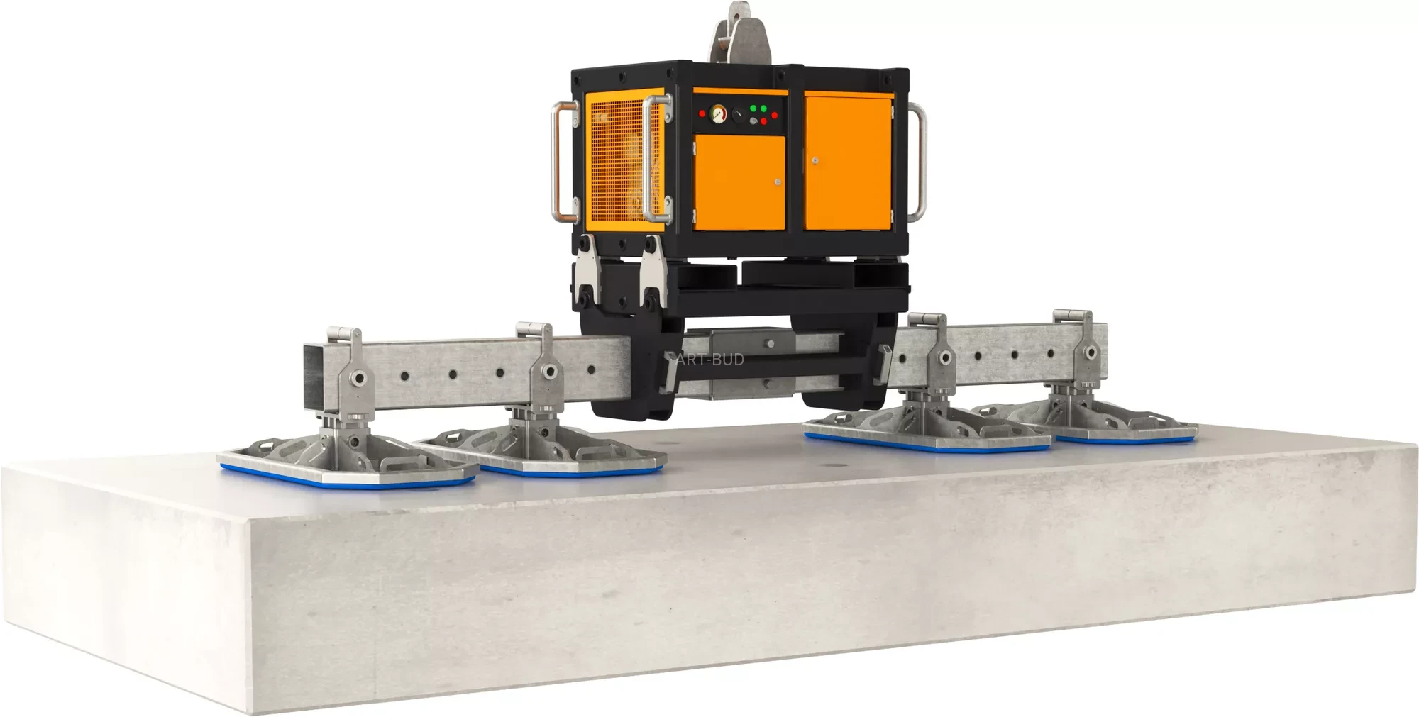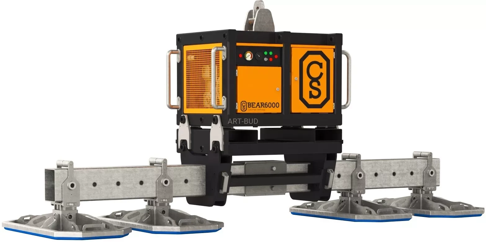 to mocna maszyna do podnoszenia, przemieszczania, obracania i pionowania płyt betonowych i prefabrykatów o wadze do 6000 kg. Posiada olejową pompę próżniową zasilaną silnikiem spalinowym lub elektrycznym (400V), co pozwala na pracę w pomieszczeniach zamkniętych.