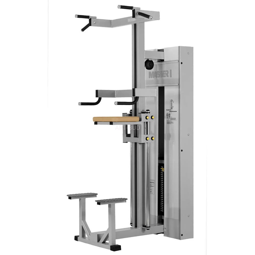 Dwufunkcyjna maszyna siłowa zastępująca klasyczne podciąganie na drążku i poręczach umożliwiająca odciążenie ciężaru ćwiczącego. Przeznaczona do ćwiczeń mięśni najszerszy grzbietu, klatki piersiowej oraz prostowników i zginaczy ramion. Osłony stosu wykonane są z poliwęglanu. Regulacja obciążenia odbywa się za pomocą magnetycznego selektora obciążenia. Elementy tapicerskie zostały dopasowane do anatomicznych kształtów ćwiczącego, co sprzyja komfortowi i bezpieczeństwu użytkowania.