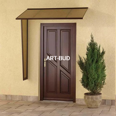 Kupiłem taki płaski daszek nad drzwi. Mantaż prosty i co najważniejsze daszek jest tani!! Zastanawiam się nad ścianką boczną.