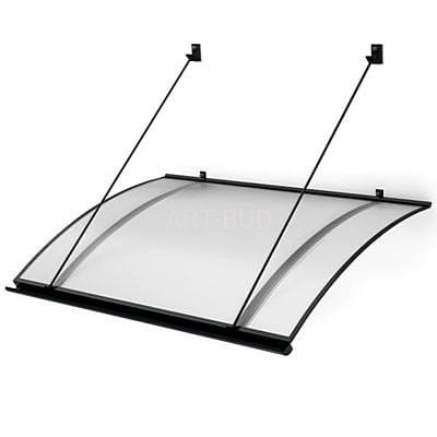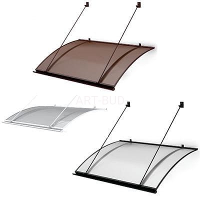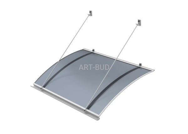 Zadaszenie w kształcie markizy na odciągach z rynienką odpływową oraz uszczelką przyścienną. Konstrukcja wykonana z aluminium malowanego proszkowo-kolor biały RAL 9016, kolor brązowy RAL 8017 lub kolor antracyt 7016