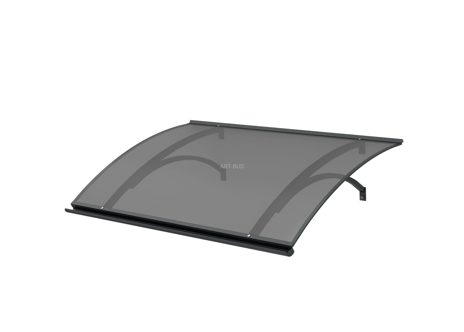 Zadaszenie w kształcie markizy z rynienką odpływową oraz uszczelką przyścienną. Konstrukcja wykonana z aluminium malowanego proszkowo - kolor biały RAL 9016, kolor brązowy RAL 8017 lub kolor antracyt RAL 7016. Wypełnienie- płyta poliwęglan komorowy bezbarwny/dymny z obustronnym filtrem UV.