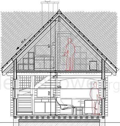 | Powierzchnia zabudowy: | 35 + 12 m2 (parter), 27 + 6 m2 (poddasze) |