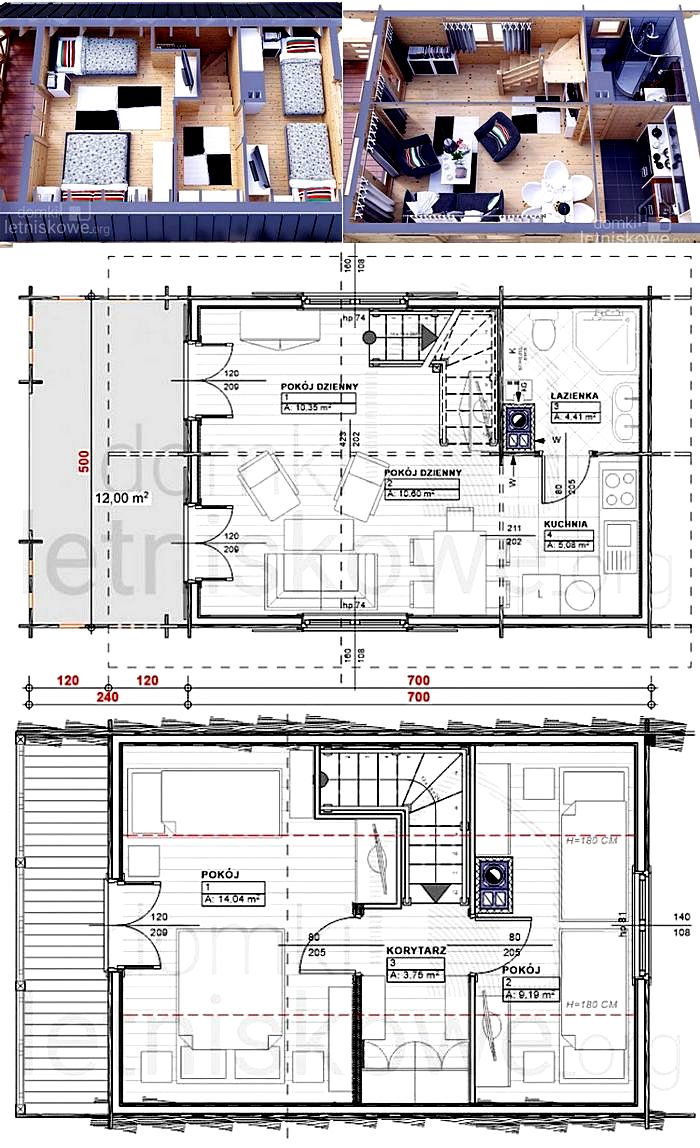Domek drewniany piętrowy letniskowy Saturn 62M2+18 M2