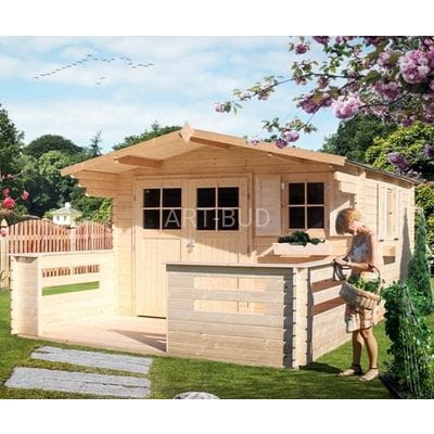 Elegancki i funkcjonalny domek ogrodowy z dowolnym przeznaczeniem , wzniesiony na planie prostokąta. Solidnie i estetycznie wykonany, posiada dwuspadowy dach pokryty papą asfaltowa , a w opcji gontem bitumicznym . Wyposażony w dwuskrzydłowe drzwi, w połowie przeszklone oraz dwa otwierane okna - na przedniej oraz na bocznej ścianie, dzięki czemu do wewnątrz przedostaje się sporo światła słonecznego. Domek dodatkowo posiada okap z przodu o głębokości 1000 mm. Wejście stanowią dwuskrzydłowe, przeszklone drzwi. Wyposażone w szprosy okna umieszczone zostały na frontowej i bocznej elewacji. Precyzja łączeń narożnych wpływa na stabilność i trwałość konstrukcji. Drewniany taras do domku ogrodowego POWOJNIK jest idealnym uzupełnieniem tego modelu. Daje on 6,7 m2 dodatkowej powierzchni przed domkiem, którą można wykorzystać do odpoczynku i komfortowej rekreacji. Wykonany z surowego drewna świerkowego z barierką o wysokości 98cm. Grubość balika 28 mm