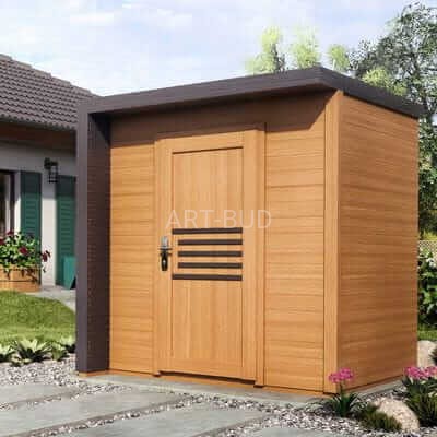 Domek ogrodowy narzędziowy posiada jednoskrzydłowe drzwi, całość wykonana jest solidnie i estetycznie z drzewa świerkowego.