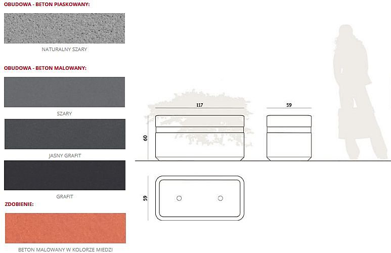 dowolnie łączyć z innymi produktami. Beton wykorzystany w kolekcji Genewa, to gwarancja trwałości i długiego okresu użytkowania mebli miejskich oraz zabezpieczenie przed szkodliwym działaniem czynników zewnętrznych.donica kod: 133140
